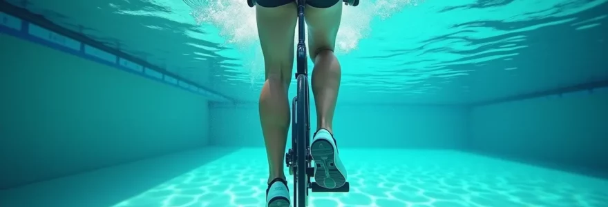 La résistance omnidirectionnelle constitue le second avantage distinctif. Sur terre, pédaler sollicite principalement les muscles extenseurs lors de la poussée descendante. Dans l’eau, la résistance s’oppose au mouvement dans toutes les directions : poussée, traction, montée, descente. Les muscles agonistes et antagonistes travaillent simultanément, créant une sollicitation musculaire équilibrée.